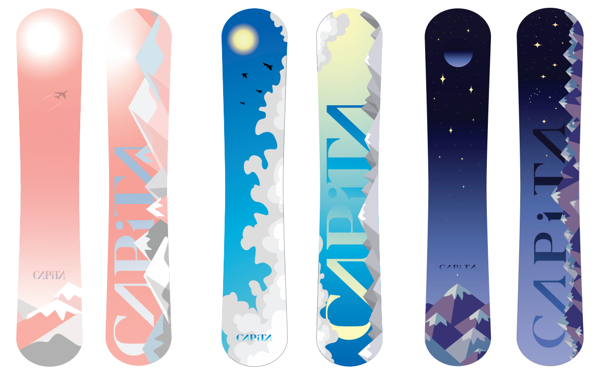 All of the boards show a scene during different times of the day: Dawn, Day, and Dusk.