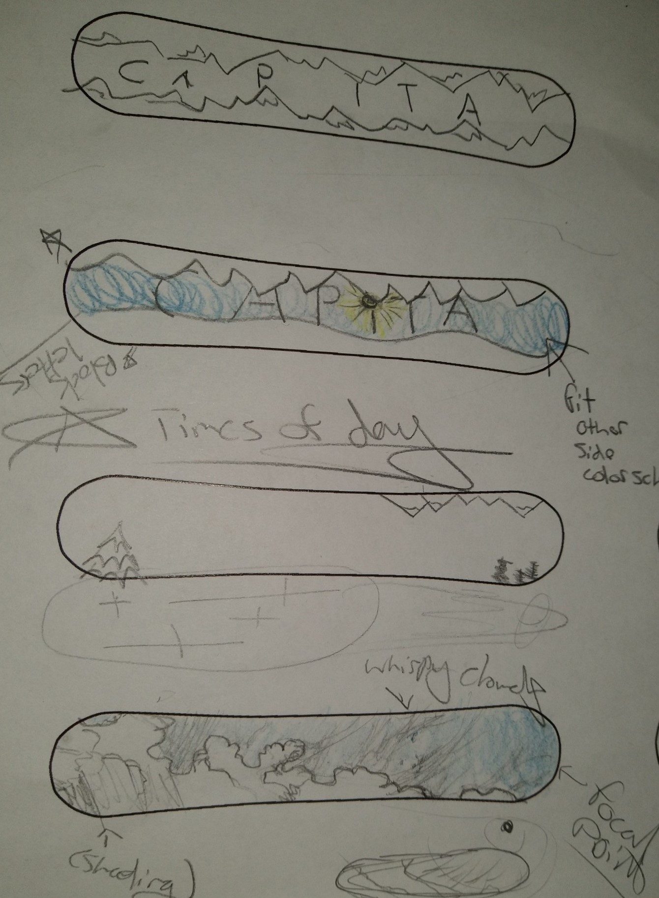 Once we decided the theme, we descided who was designing which board. I was designated the ‘Day’ board, and we started to create roughs for our selected Time.